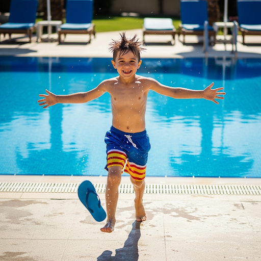 After the pool, he goes back home. He feels happy and relaxed. He looks forward to the next day when he can go to the pool again.